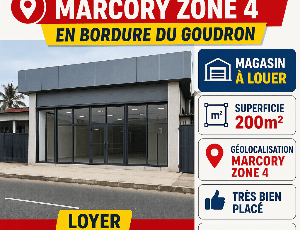 Magasin de 200m² à louer marcory zone 4 en bordure du goudron