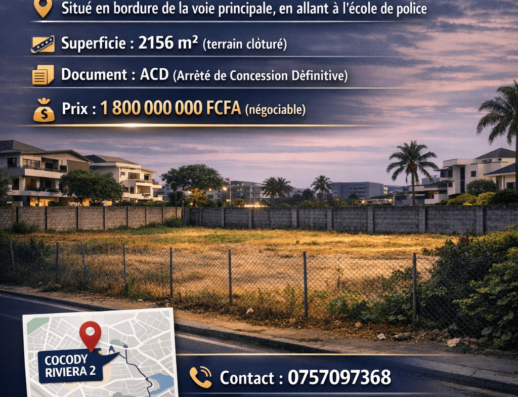 Terrain 2156m² avec ACD en vente cocody riviera 2