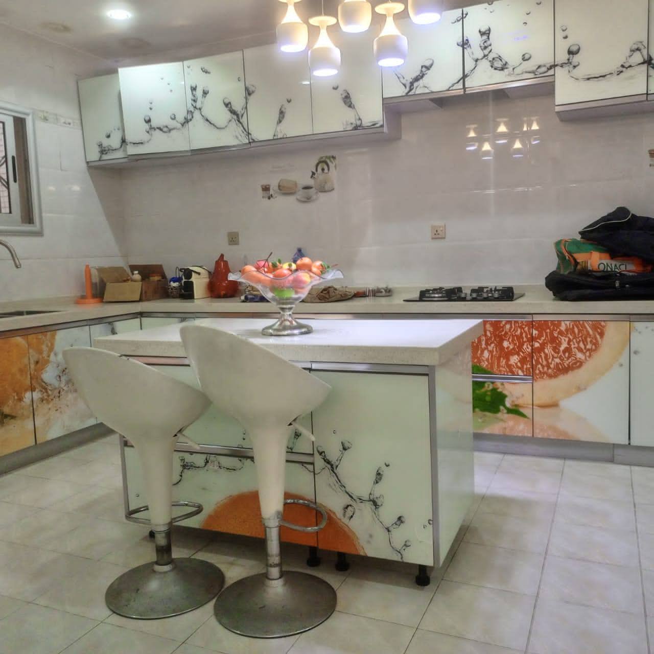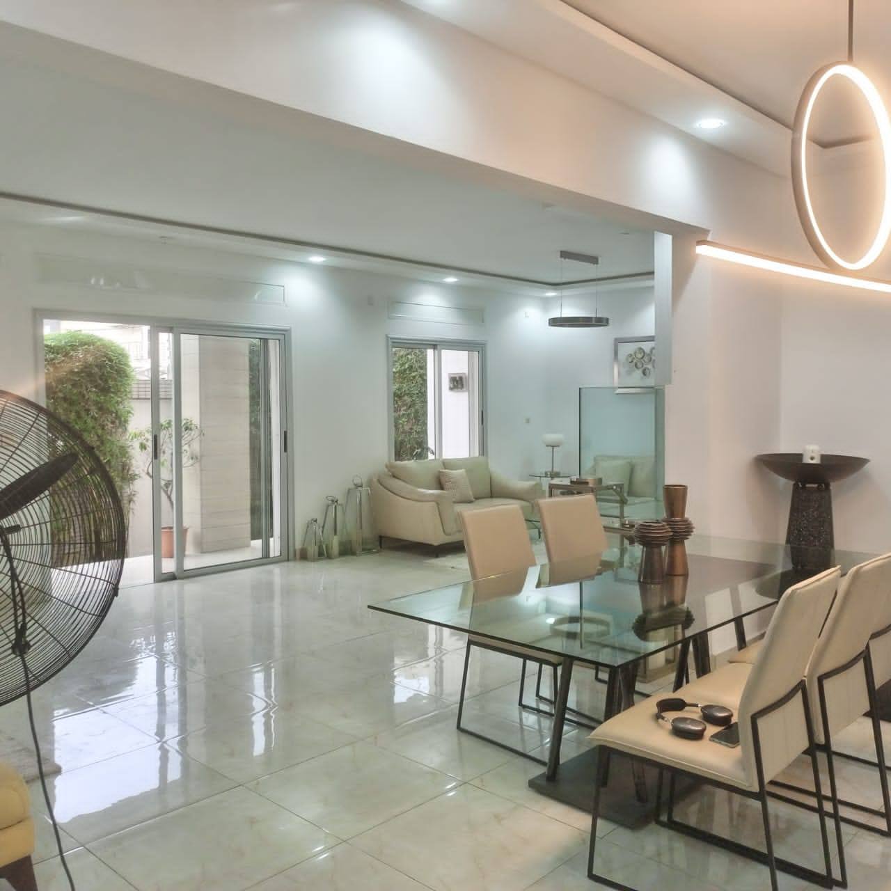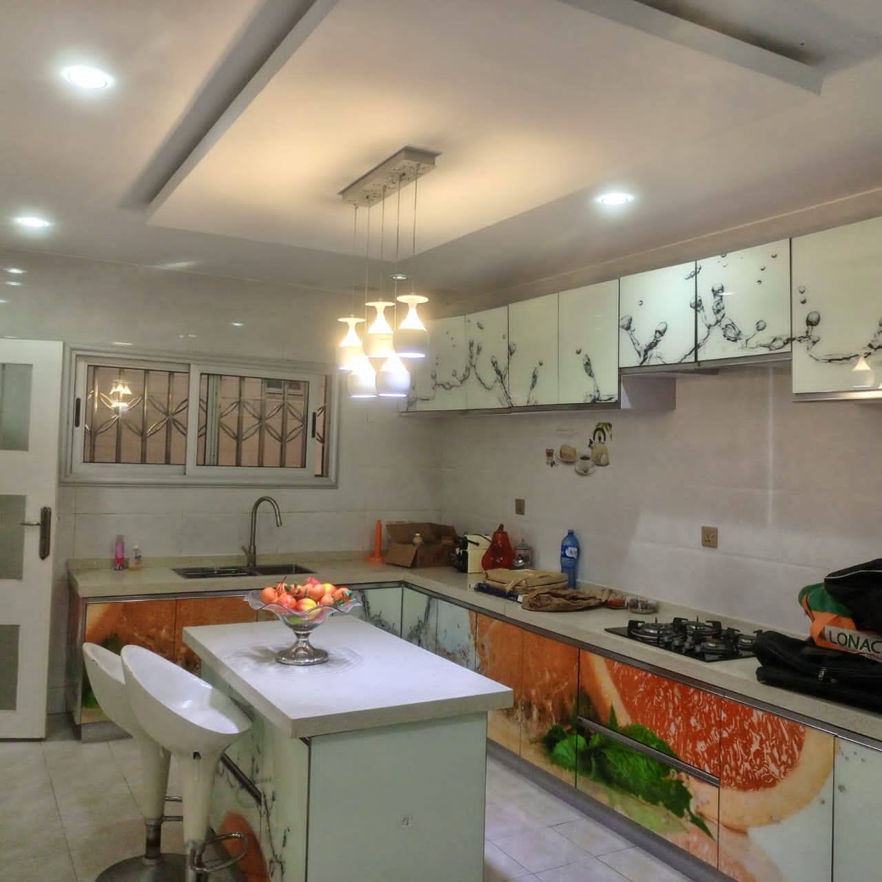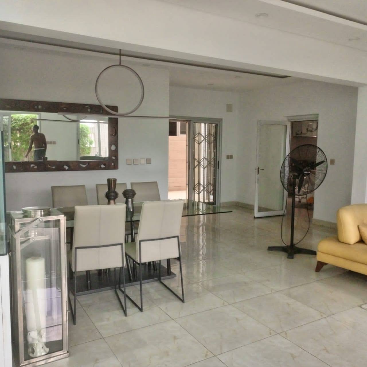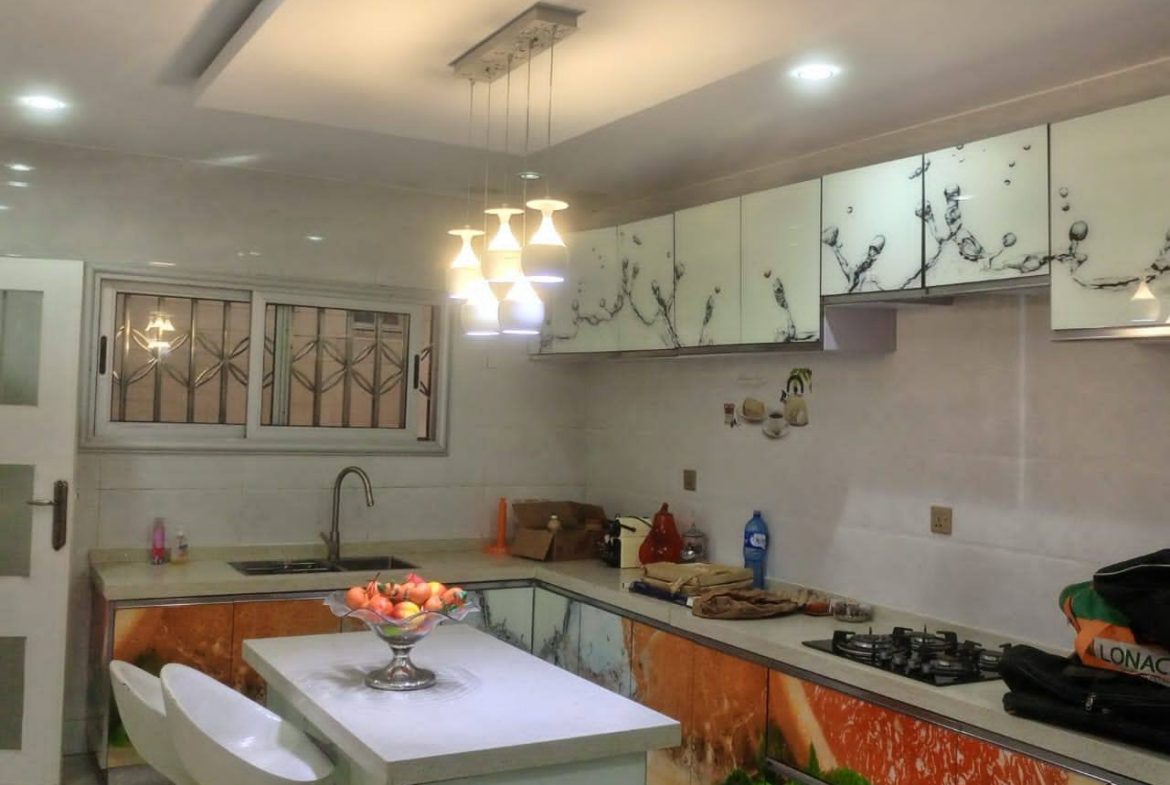Rez-de-chaussée : grand salon, salle à manger, chambre ami, boyerie, 2 cuisines (européenne et africaine), terrasse spacieuse.